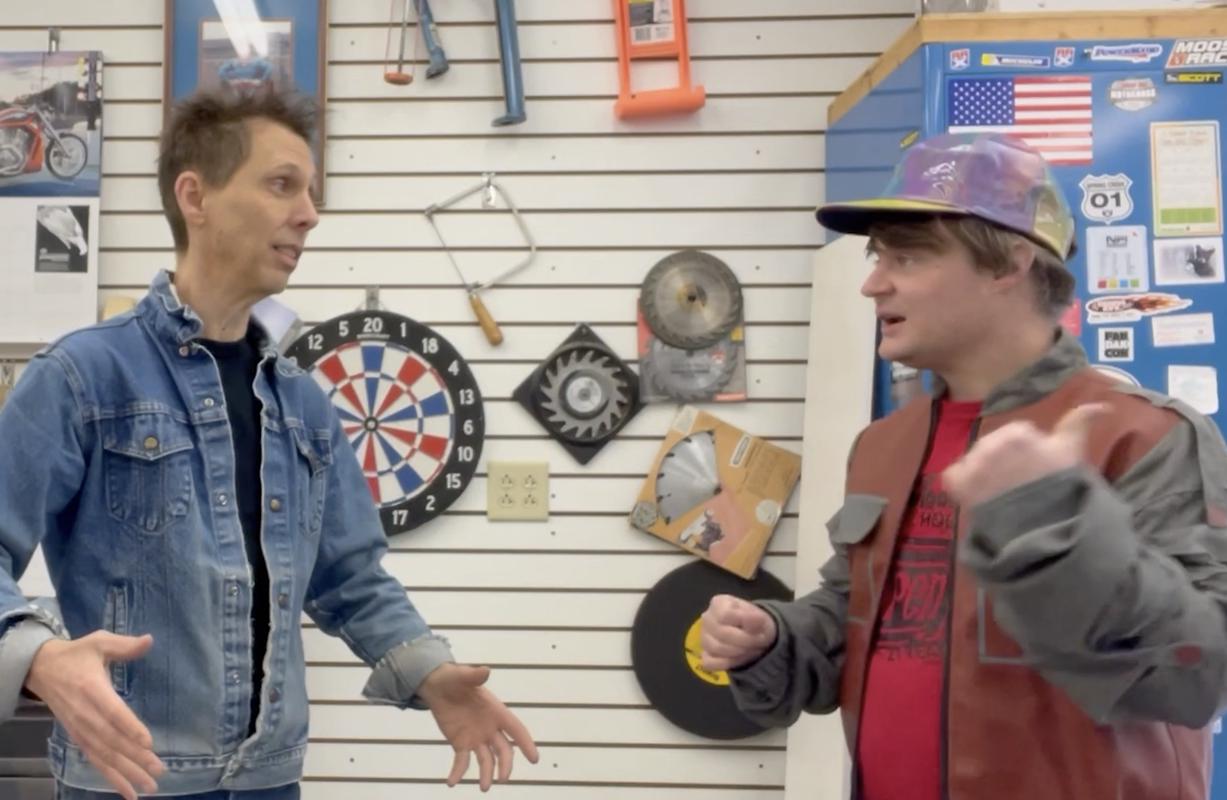 — Thrift store costumes, cardboard sets, hand-made props, etc.